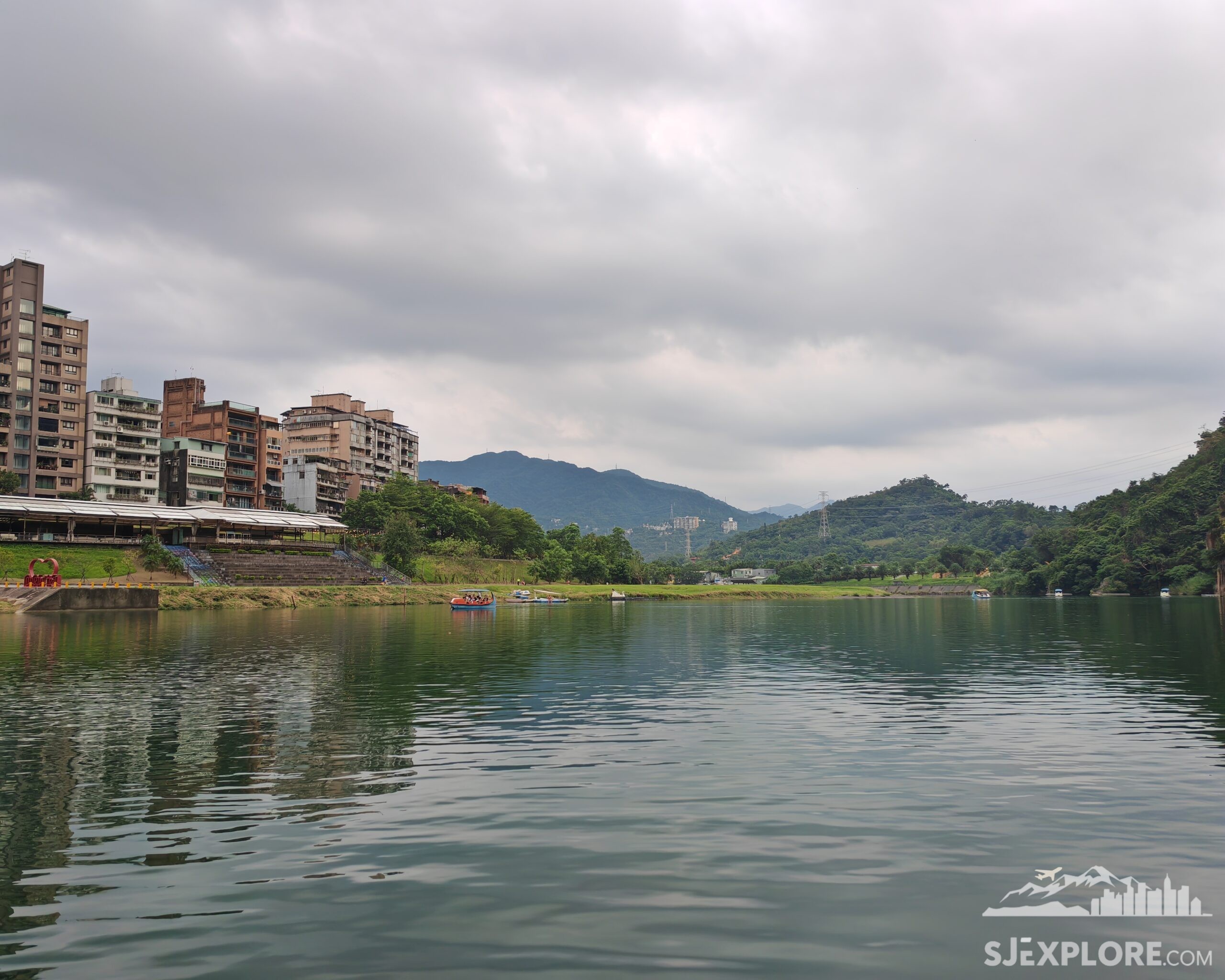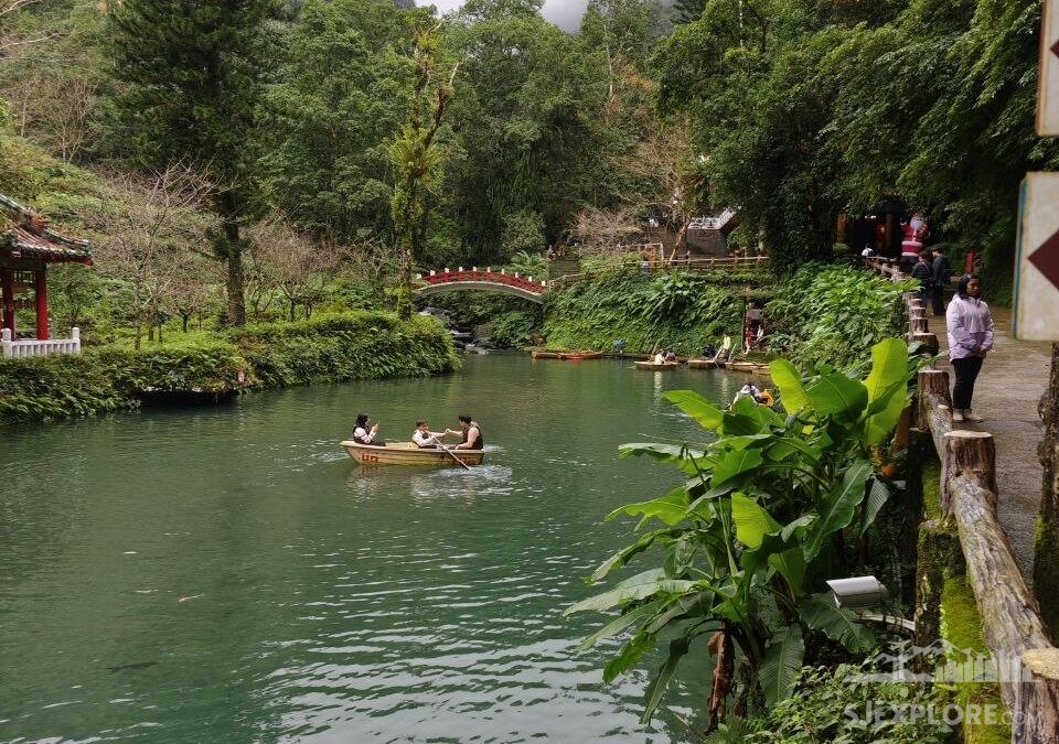 The green misty mountains around, the emerald waters, the Chinese gazebo, and the red footbridge all combine to create a truly captivating scene—something that feels like it was lifted from an old Chinese painting.